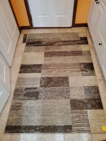 LOT 111 - Superior Area rug in shades of beige and brown measuring 72 in x 47 in. Garage entry hallway