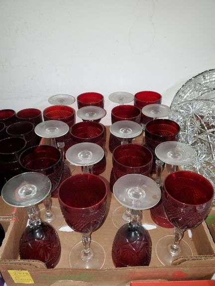 LOT 247B - (20) Cristal D' Arques Durand ANTIQUE RUBY RED Wine / Water Goblets. See photos.