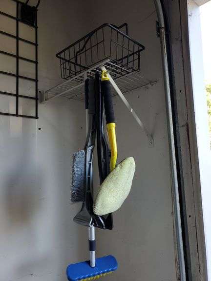 LOT 292 - Snow brushes, windshield cleaning pad, black wire basket.