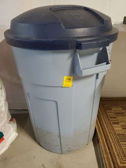 LOT 349 - Rubbermaid Roughneck 32 gallon trash can with lid.