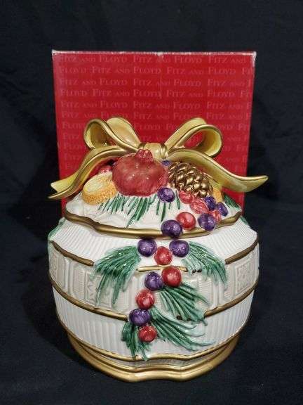 LOT 361 - Fitz and Floyd winter spice motif lidded candy dish with original box