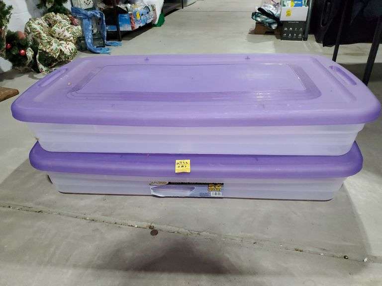 LOT 433 - (2) 56 q under bed totes with lids. By the piece X2