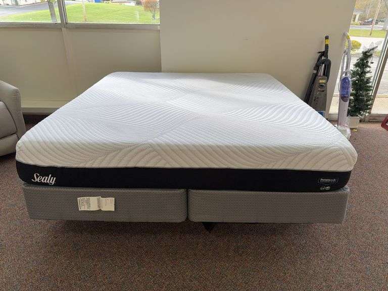 LOT 1A - King Size Sealy Posturepedic Foam Mattress on Hollywood Bed Frame. Super Clean